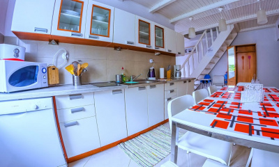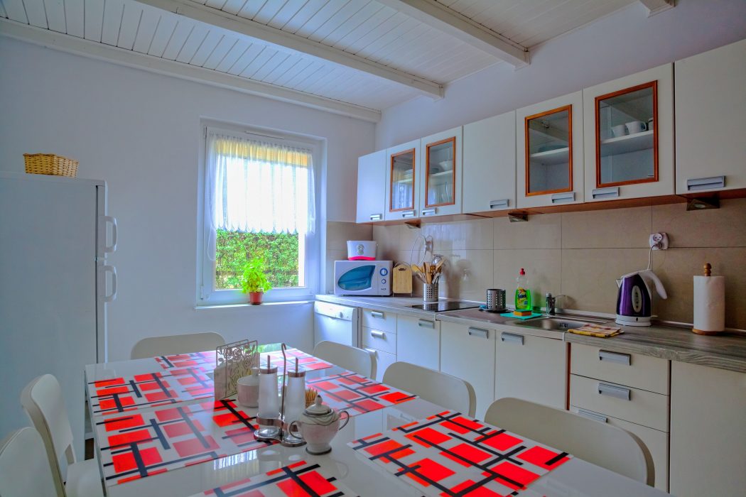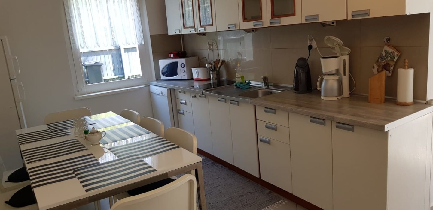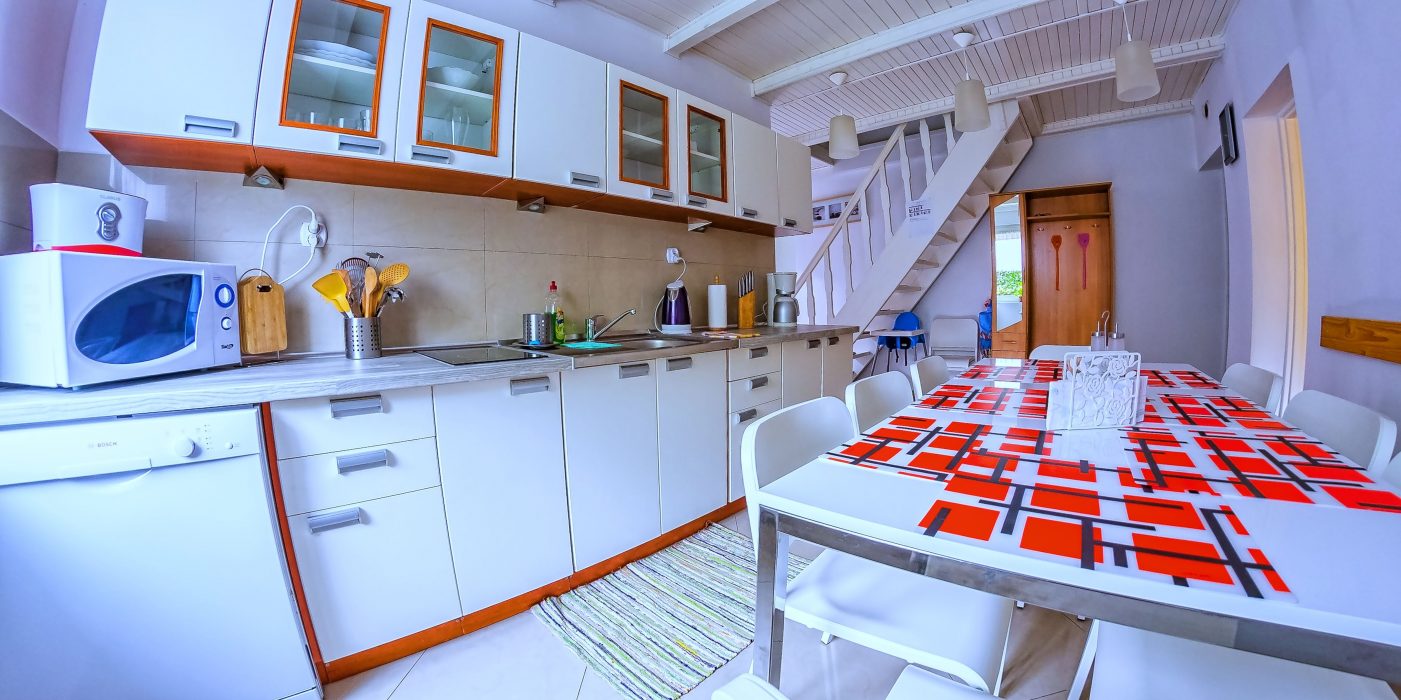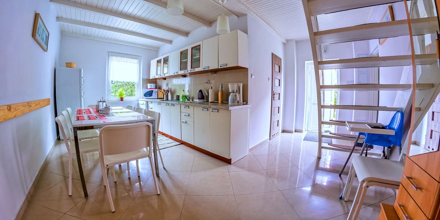- kuchnia wyposażona jest w płytę elektryczną, ekspres do kawy, toster, zmywarkę, czajnik elektryczny, kuchenkę mikrofalową oraz komplet naczyń kuchennych