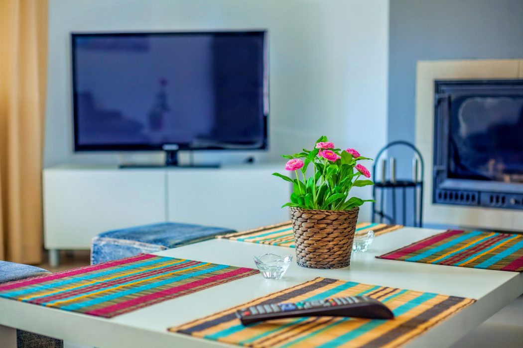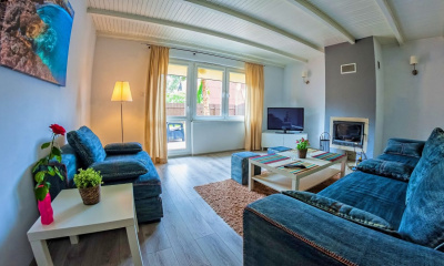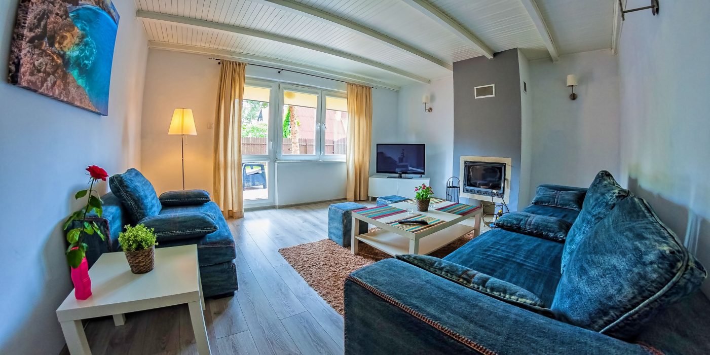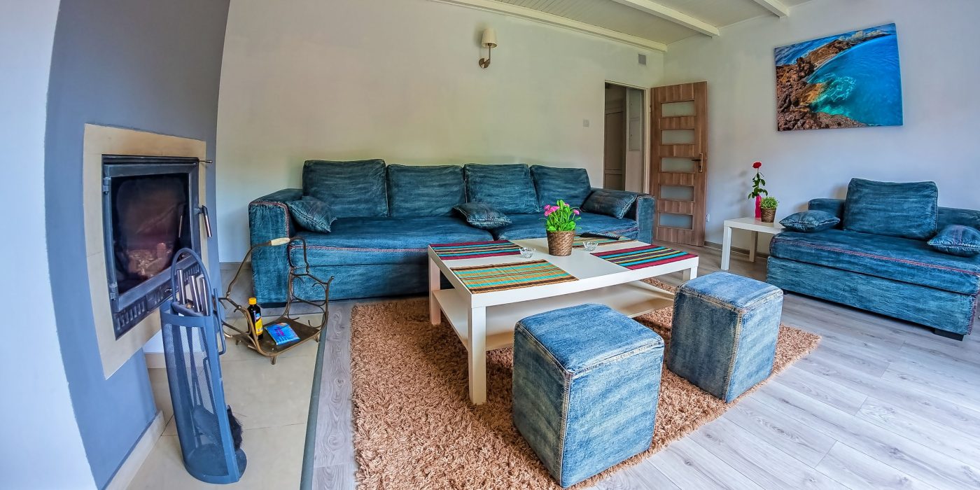 - salon wyposażony w 43 calowy telewizor, komplet wypoczynkowy